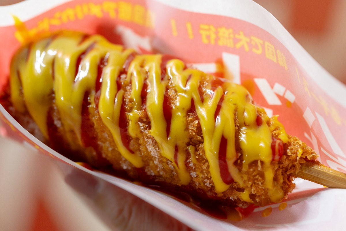 岡山後楽園や岡山城を歩いてお腹がすいたので、チーズハットグをいただくことにしました。