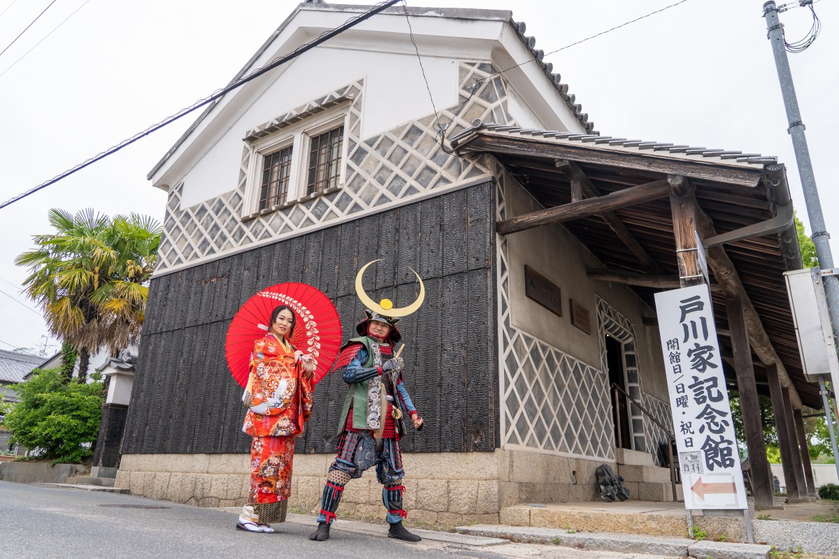 かつて、瀬戸内海に浮かぶ児島と本土との間には早島をはじめとする20余りの島々が点在し、「吉備の穴海」と呼ばれる浅い海が広がっていました。その海を埋め立てる干拓事業の先駈けとなった場所が早島町です。今回は早島町を拠点に活動する岡山戦国プロジェクトの宇喜多秀家と、その妻・豪姫と一緒に、まちの歴史を語るうえで外せない宇喜多家や戸川家ゆかりのスポットをめぐってみました。