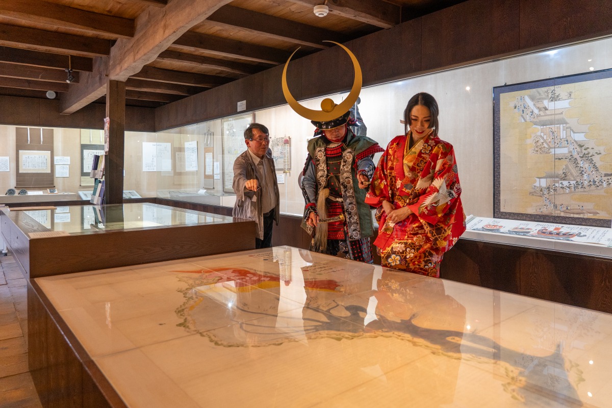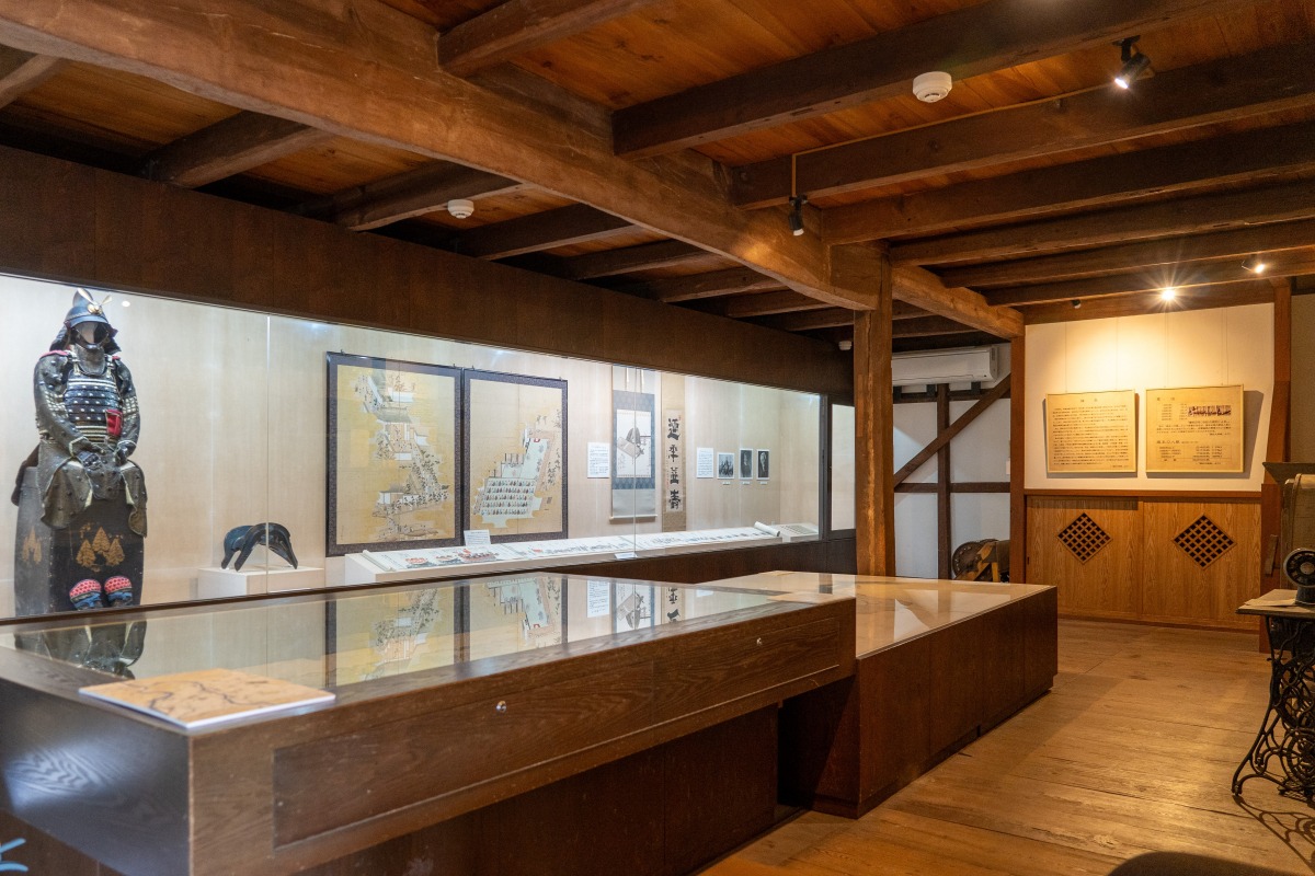 1709(宝永6)年に完成した戸川家陣屋跡の書物蔵を改修した館内には、戸川達安の関ヶ原参陣を描いた絵や、徳川2代将軍秀忠から3,400石を与えられたことが記された早島知行朱印状、鎧や指物など、戸川家に代々受け継がれてきた歴史資料が展示されています。