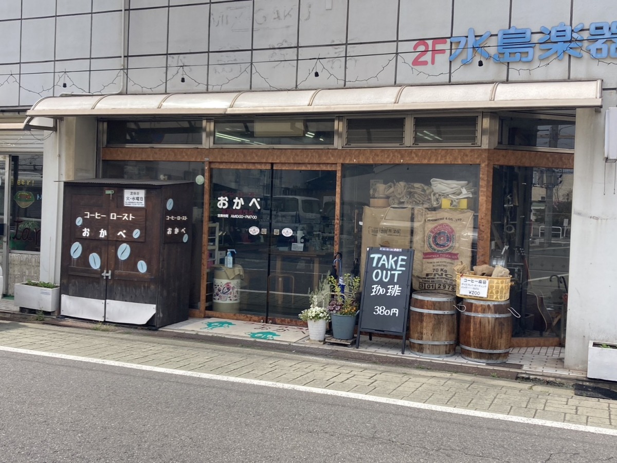 商店街の中を歩いていると、ふとコーヒーのいい香りが漂うエリアがありました。そこで見つけたのが焙煎所「コーヒーローストおかべ」です。