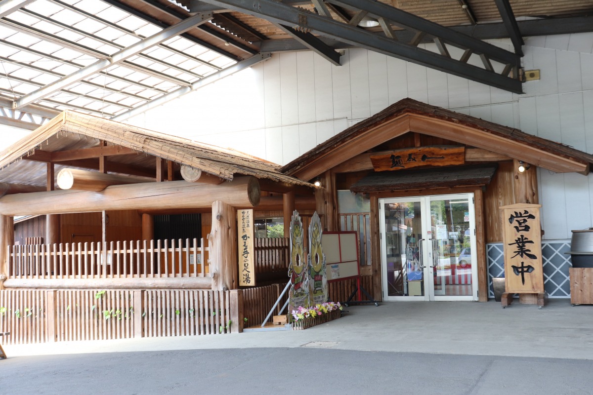 「麺蔵人」の入り口に設けられた天然温泉の「足湯」。どなたでも無料で楽しめますが、おじゃました日はちょうど故障中で残念でした。部品が入荷次第再開予定とのことです。