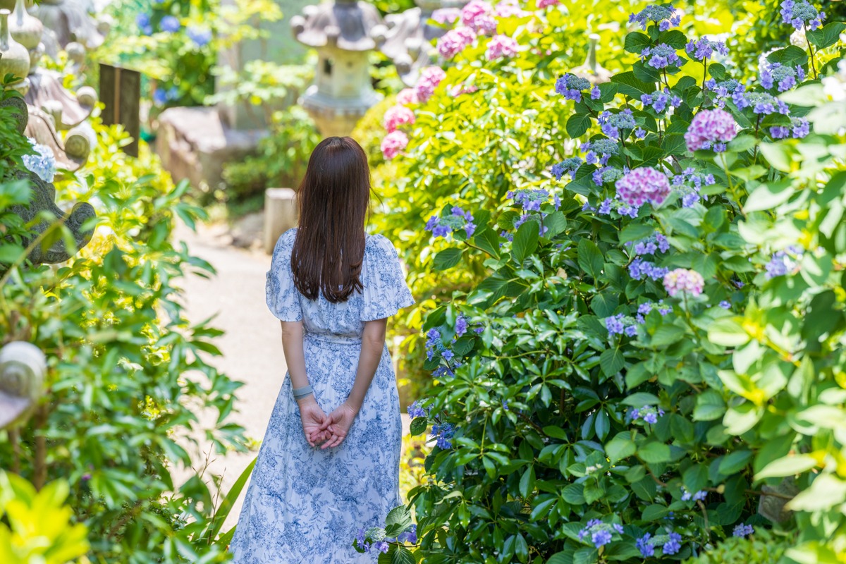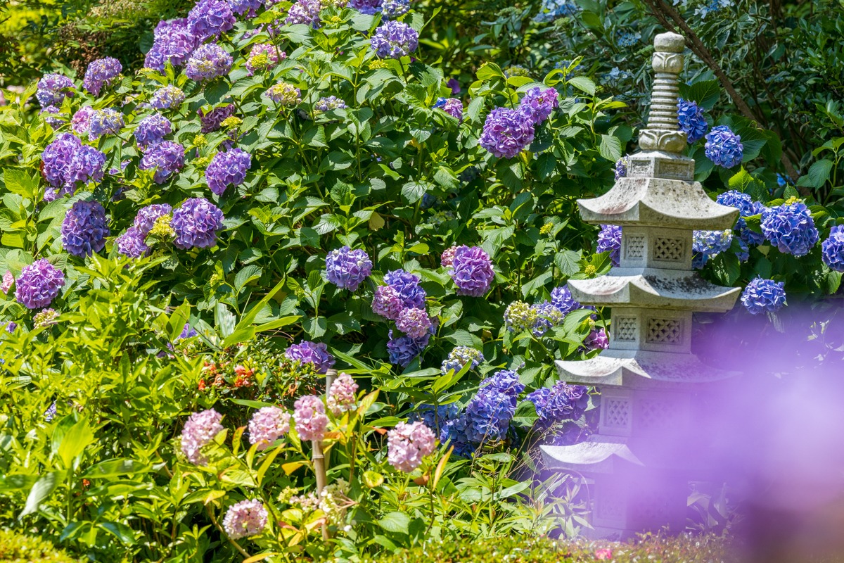 現在はあじさい寺として多くの人々に親しまれており、その名の通り、色とりどりの紫陽花で境内が彩られています。