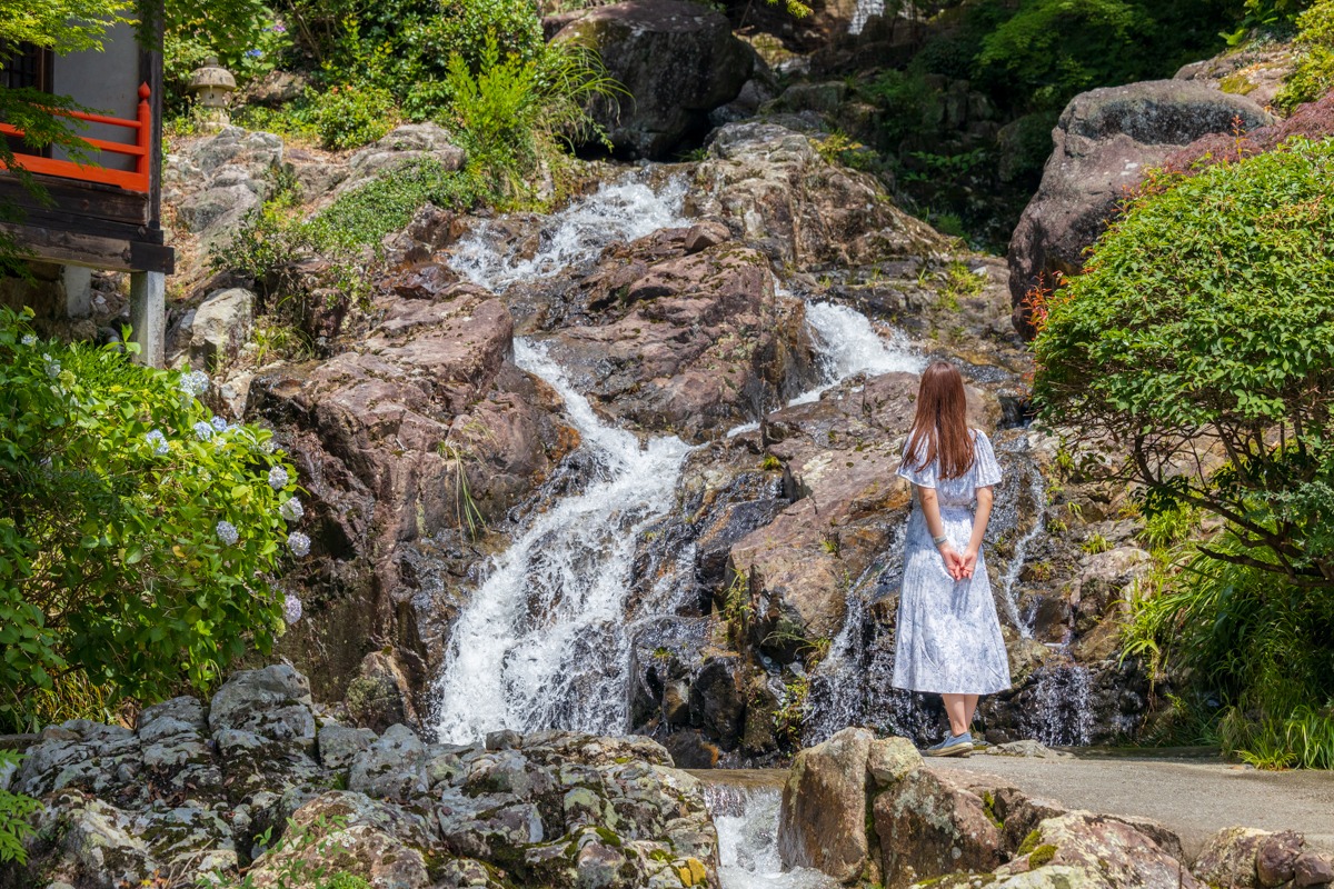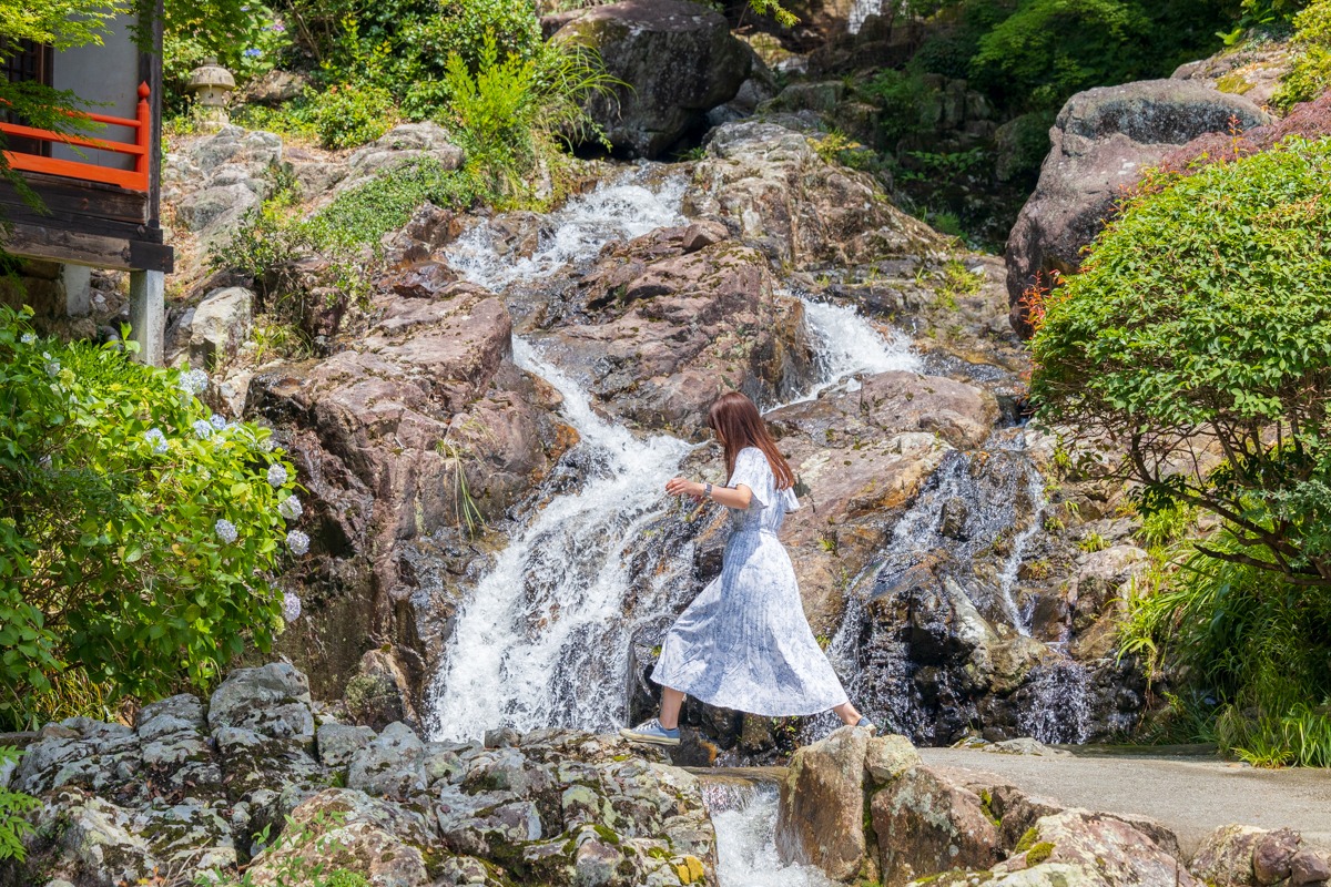 歴史あるお寺と美しい紫陽花、すがすがしい滝とかわいい猫ちゃんと魅力満載です。