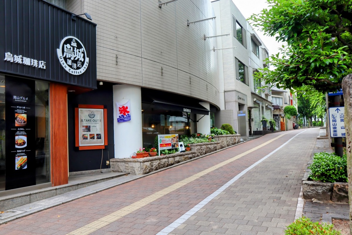 岡山のシンボル岡山城、通称「烏城」から徒歩約8分にあるホテルエクセル岡山の1階にあるカフェ。路面電車の「城下」電停から徒歩約1分とアクセスが良いのも特徴です。