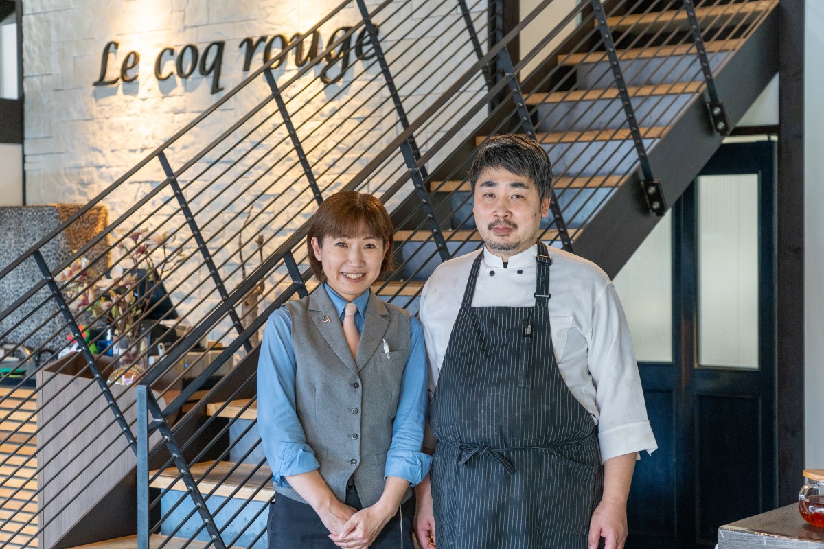 オーナーシェフの合田吉博さんと奥様のさゆりさん。穏やかな佇まいのお二人は、お店の雰囲気そのものです。和やかな空気感が漂うお店で美味しいフランス料理やスイーツを味わう。そんな“口福”のひとときが叶う里庄町の名店へぜひ出かけてみて。