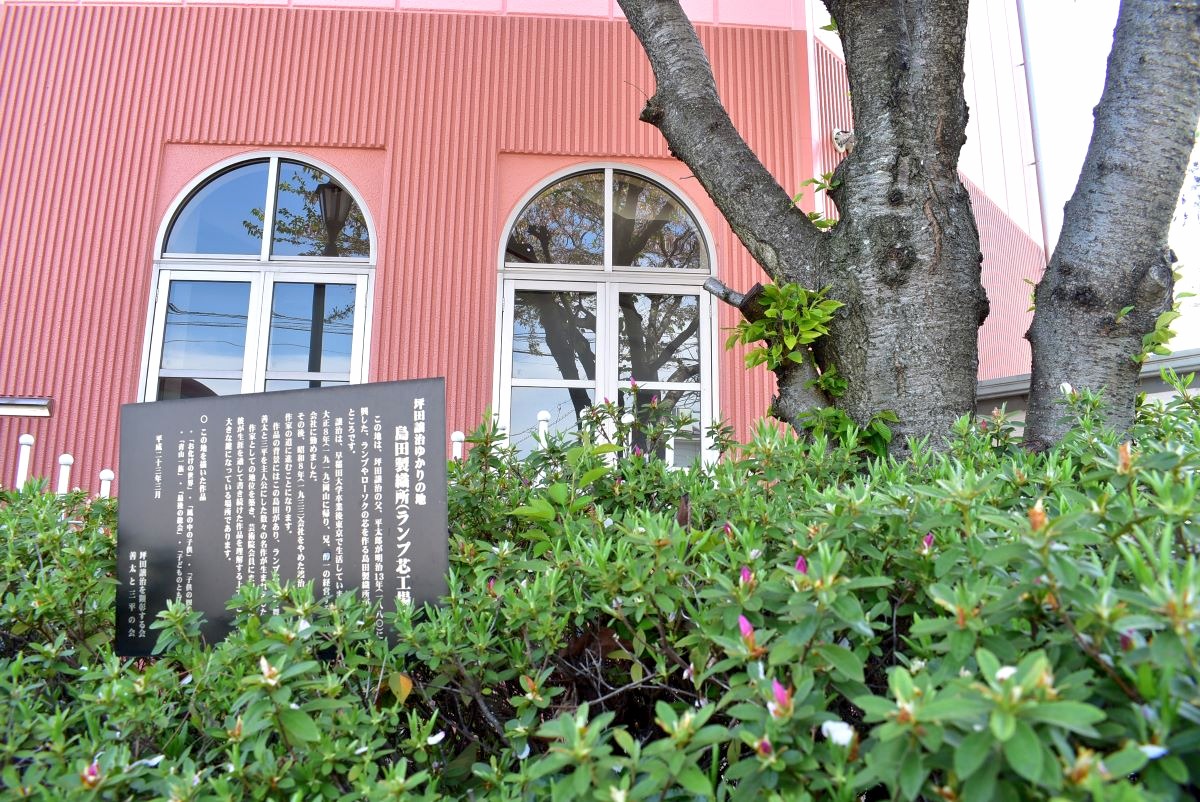 JR岡山駅西口からほど近い島田本町周辺に、ゆかりの地が多くあるようです。まずは譲治が通っていたとされる石井小学校(旧石井尋常小学校)あたりから、実家が営んでいたとされる製織所跡へと向ってみました。この場所でランプの芯などを作っていたんだとか。まだ電気のなかった時代、どんな生活だったのかな。