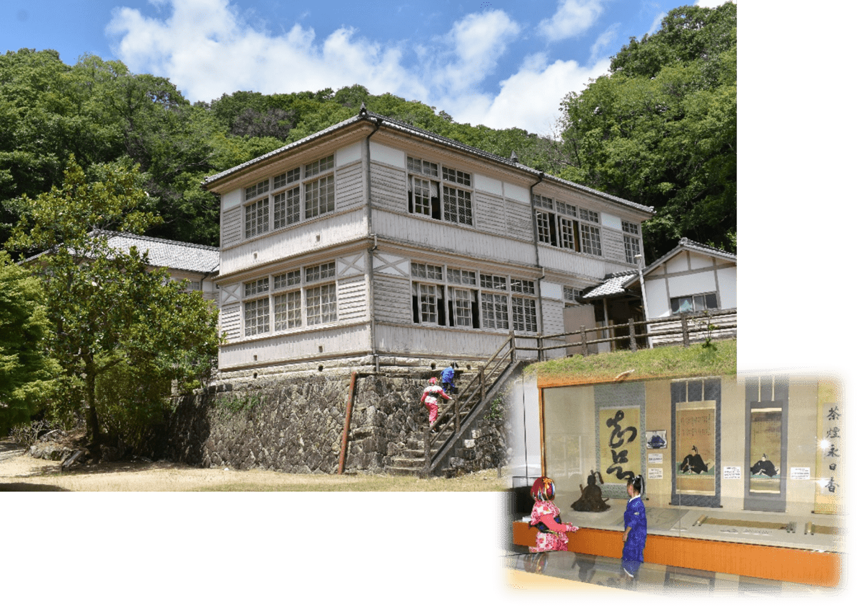 旧閑谷学校を訪れた観光客の方々は、講堂などを見るとUターンして帰ってしまわれる方がたまにいらっしゃいます。しかし、ここからがもっと面白い!書庫の先にある石垣と石垣の狭い長い通路を抜けた先には昔の木造校舎を使った閑谷学校資料館があります。ここでは閑谷学校の歴史を詳しく知ることができるので、ぜひ立ち寄ってみてください。