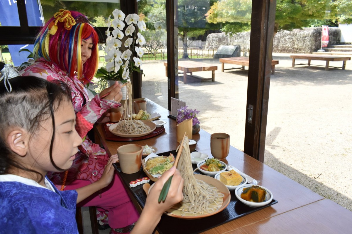 秋の紅葉がとても美しいことで有名な国宝の講堂が残る「旧閑谷学校」。敷地内に本格的な蕎麦屋さんがオープンして人気だというのを聞いて行ってみました。実は私、岡山にUターンで帰ってくるまでは関東や信州方面で蕎麦屋巡りをしていたほどの蕎麦好き。岡山に帰って来た当時、岡山にお蕎麦屋さんがほとんどないことにびっくりしました。近年、岡山にも本格的な美味しい蕎麦屋さんも増えてきました。作州忍者鶴山隊のピンク忍者殿と和文化子供大使の桃太郎くんと閑谷学校の史跡散策と一緒に楽しんできました。
