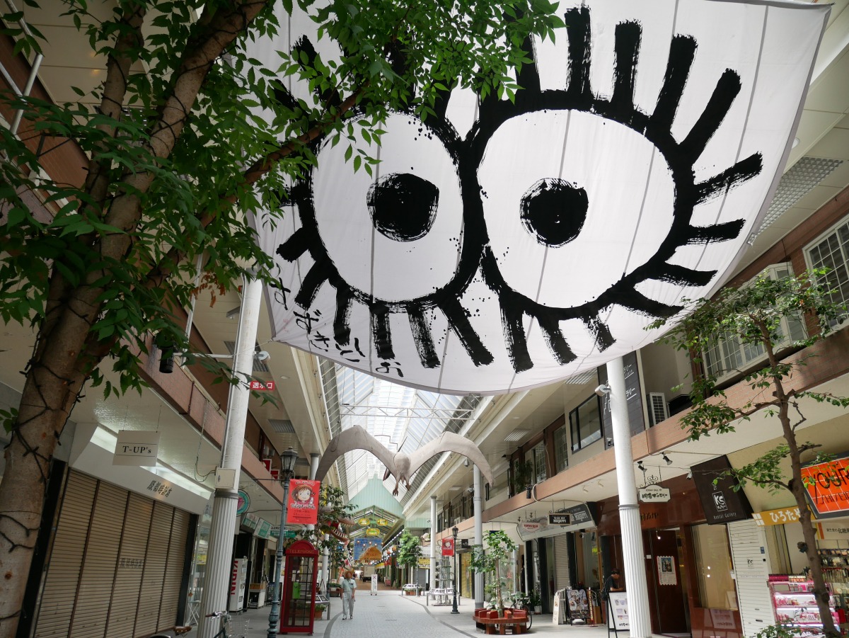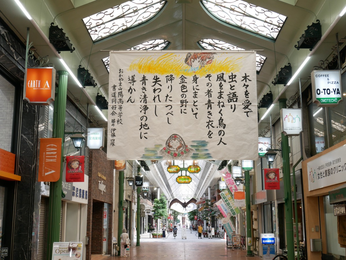 表町商店街には鈴木氏が描いたマックロクロスケも飾られています。今回、鈴木氏の歩みを通して、ジブリ作品を振り返り、今まで知らなかったジブリの魅力、鈴木氏の人間性を知るきっかけになりました。鈴木氏の言葉が今の自分に刺さり、背中を押してもらえるような気持ちにもなりました。ぜひ皆さんも「鈴木敏夫とジブリ展」(岡山展)の世界にどっぷり浸ってみてください。