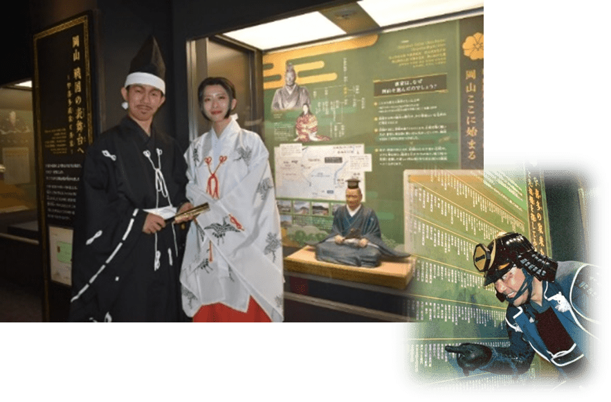 天守の内部では映画やテレビでおなじみの岡山市出身の歴史学者・磯田道史先生による監修で、楽しみながら岡山城の歴史を知ることができるんじゃ。