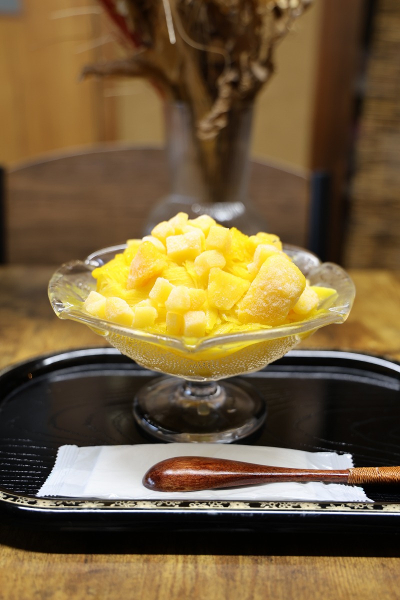 天井には台湾の提灯が灯されていて、雰囲気は現地の屋台にいるようです。暑い日だったので、マンゴーたっぷりのかき氷(850円)も頂きました。錬乳はお好みでかけてもらえます。マンゴーの自然の甘味で美味しかったです。そしてなんといってもリーズナブル。倉敷美観地区散策の休憩にぜひ!