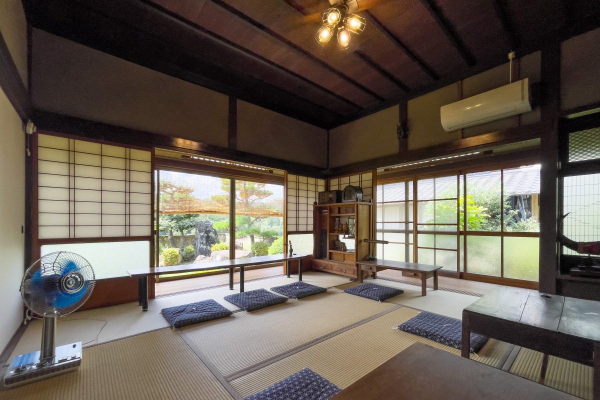 2023年3月にオープンした「cafe池ノ上」は築100年以上の古民家。国道429号線沿いの看板を目印に、「足王大権現」のお堂を目指して進むとたどり着きます。店内は縁側のあるお座敷で、昔からこの家にあったという机や棚などの調度品が懐かしい雰囲気。レトロな扇風機も現役でした。座卓のほか、テーブル席もあります。