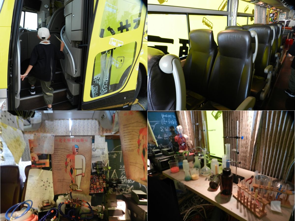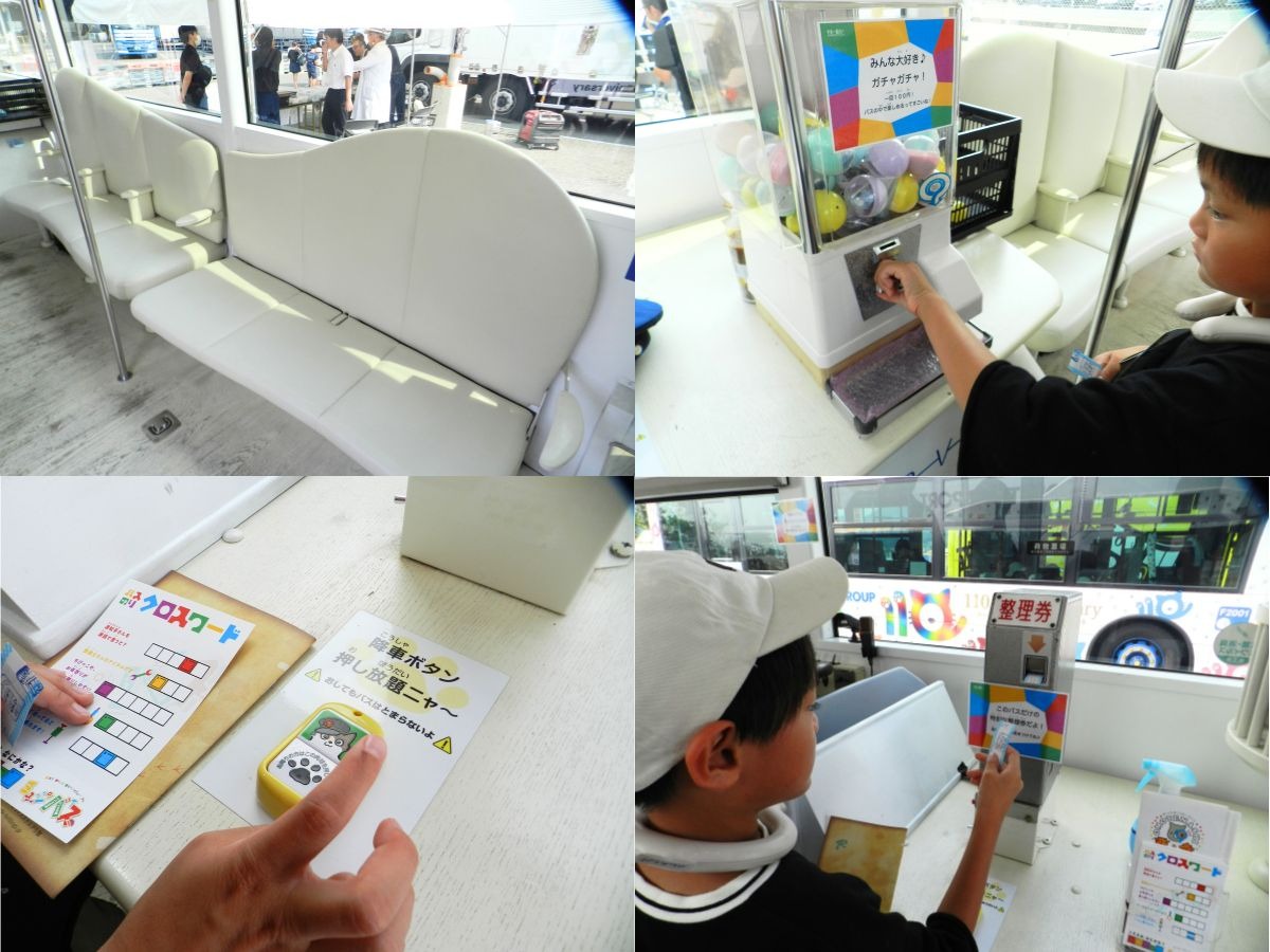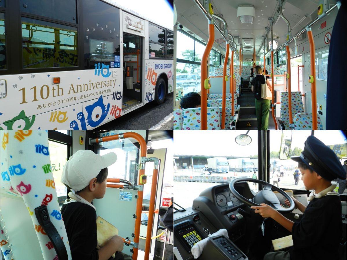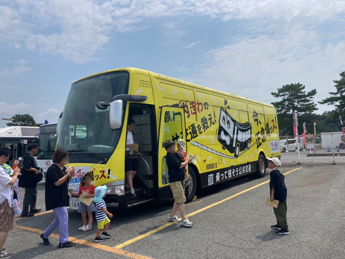 まず最初に目に入ったのが、黄色が目立つ大きなバス。街で走っていたら間違いなく目を惹きますね。このバスの名前は「正念場ッス!」。少しでも地域の皆様に公共交通に興味をもっていただけますように、との思いがあるそうです。