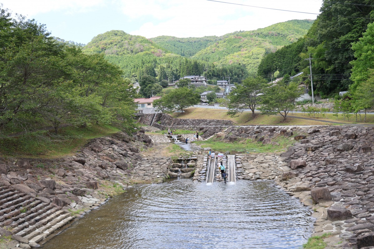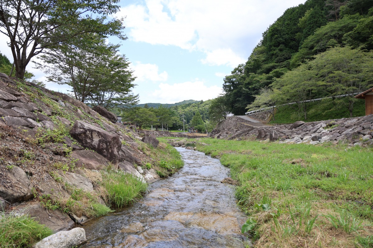 国道180号線を北に向かい、左折して県道33線から県道157号線に入ると、自然を生かした「てったせせらぎ公園」があります。「荒戸神社」からは車で約15分の場所です。公園内には川が流れ、夏には川遊びをしに親子連れがたくさん訪れます。川の流れを生かした滑り台を滑り降りると、子どもの腰のあたりまでの深さになっています。浅くて流れが穏やかなので、小さなお子様でも楽しめます。