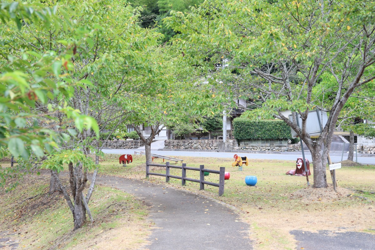 スプリング遊具もありました。春は桜の花、秋は紅葉がきれいな木の下には、シートを敷いてお弁当を食べるのにぴったりな木陰もあっておすすめです。