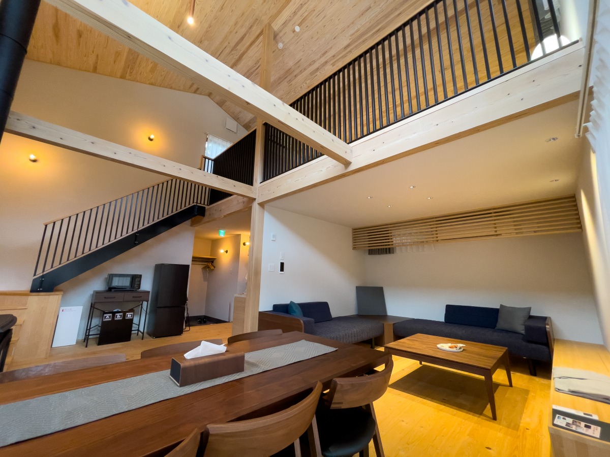 天井が高く、開放的な空間が魅力のメゾネット。リビングと寝室が1階と2階で分かれているので、グループでの旅行でも適度なプライバシーを保ちたいという時にぴったりです。