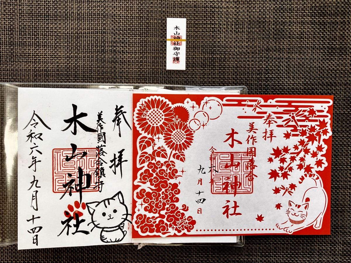 私も「木山神社」の御朱印を頂いてきました。御朱印帳に頂いた御朱印には、かわいい猫ちゃんや肉球ハンコが!