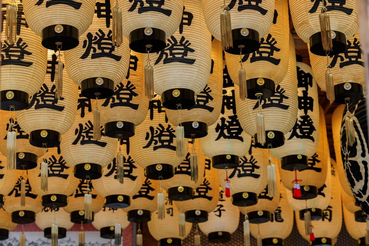 こちらは拝殿の天井です。奉納された御神燈がずらりとかかっており、圧巻!