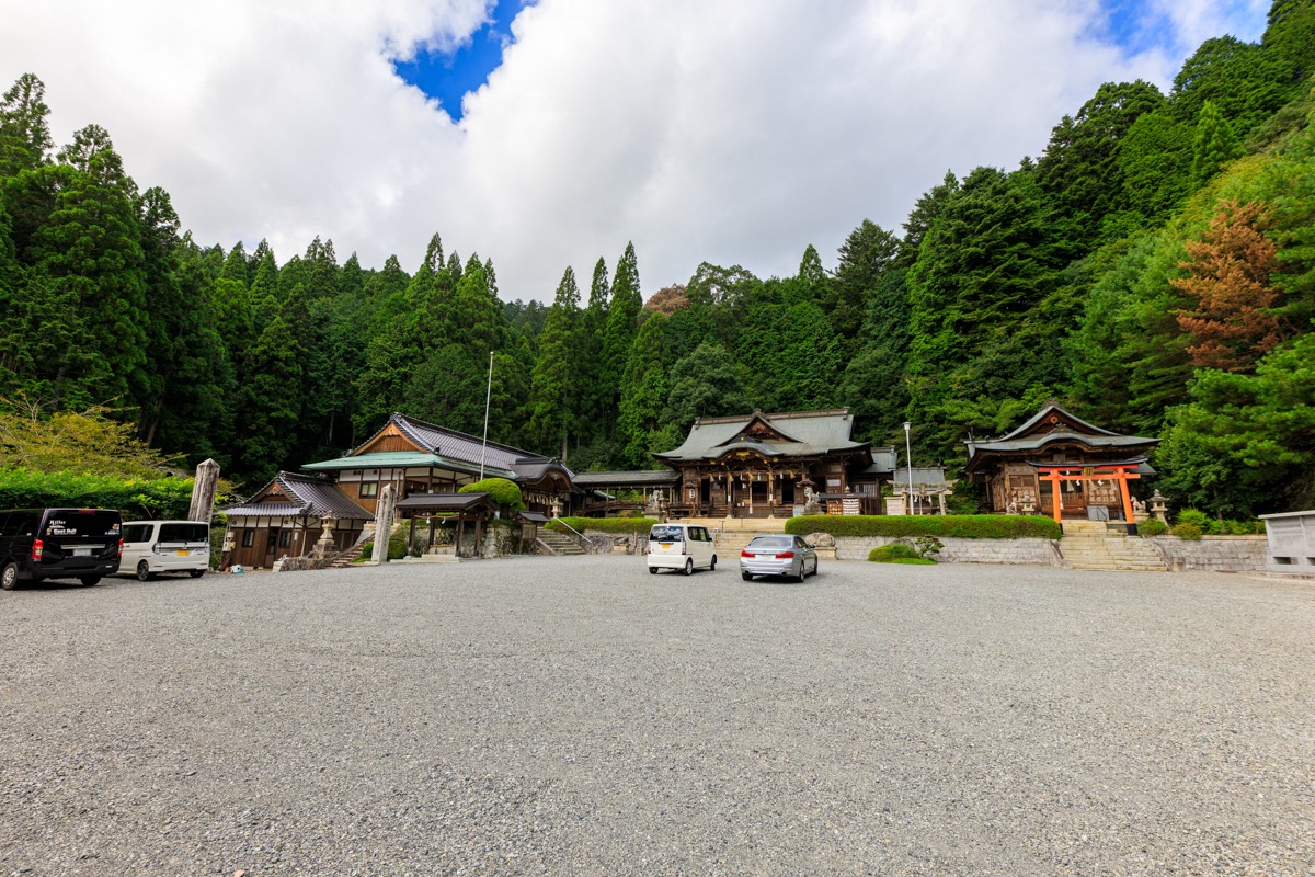 車は境内に停めることができます。また、本殿までの坂道下にある第一・第二駐車場への駐車も可能です。