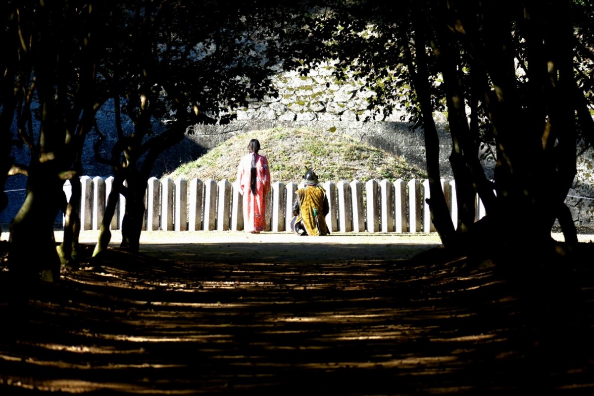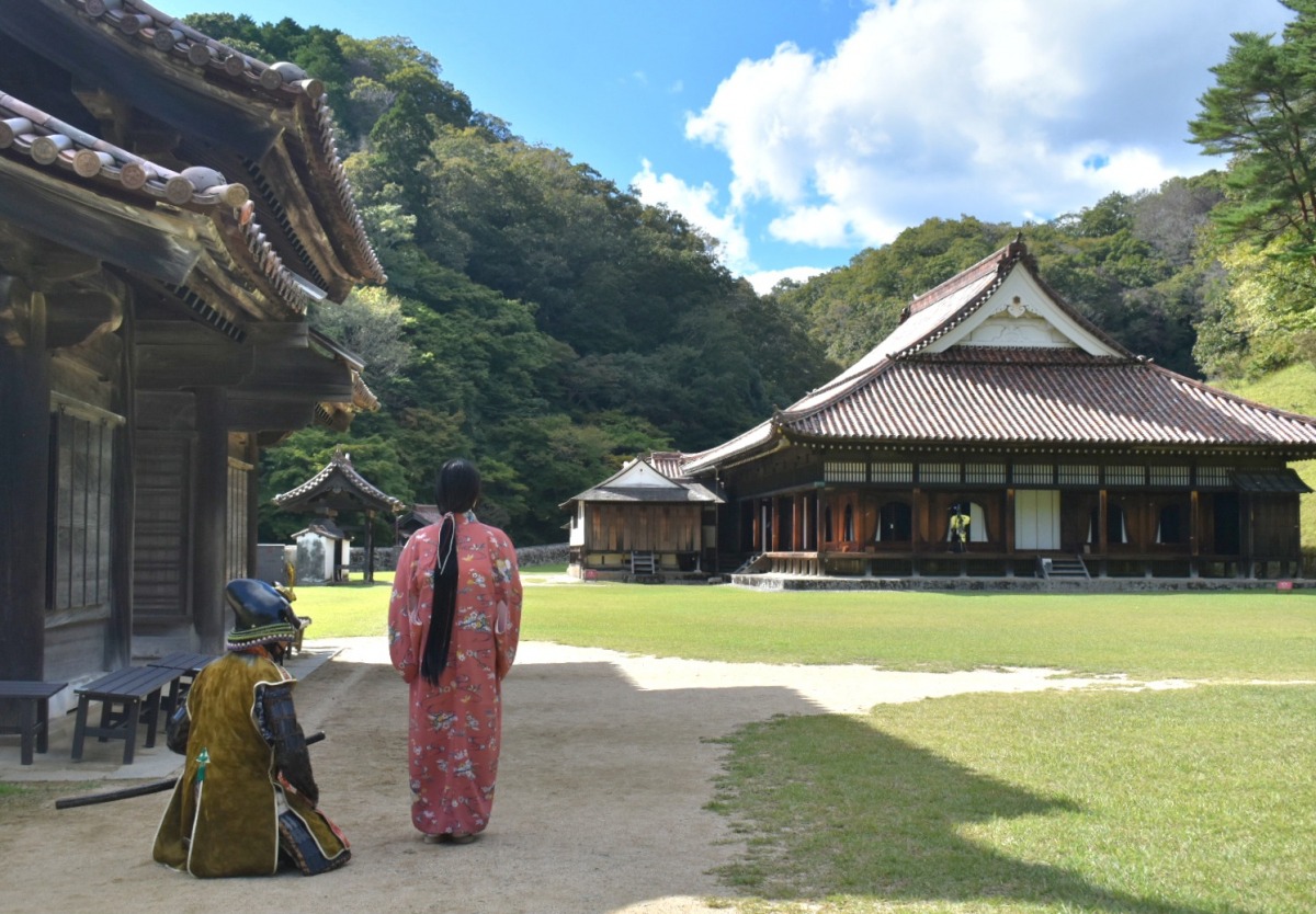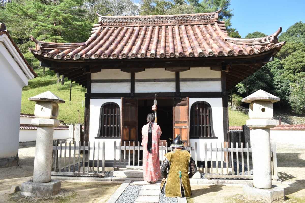 備前市の山々に囲まれた谷あいにある、我が国初の庶民のための公立学校といわれる「旧閑谷学校」。岡山藩主池田光政公によって創立され、国宝の講堂はじめ、多くの当時の建物が現存している国指定の史跡として多くの方が訪れておる。ここ閑谷学校は紅葉時期のとても美しい景観で人気のスポットでもある。毎年この時期には様々なイベントも同時に開催されておる。岡山戦国武将隊の池田光政公が妻である姫路の千姫の娘・勝姫が、時代は違うが宇喜多家家臣・戸川秀安をお供にご案内してまいろう。