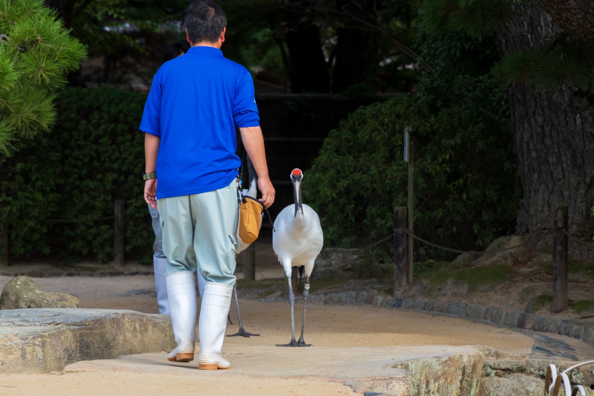 「タンチョウの園内散策」は、岡山後楽園の入園料のみで見ることができます。