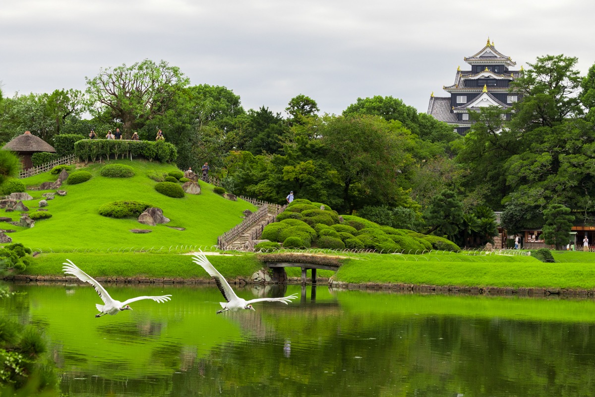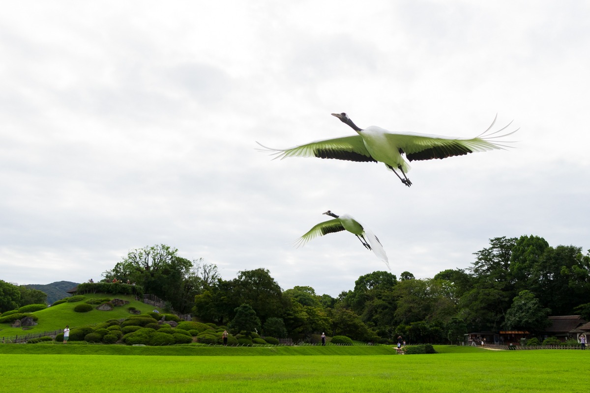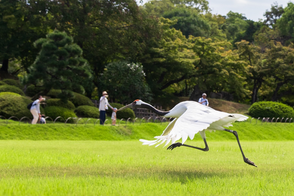 なんといっても一番の見どころは、園内から岡山城と一緒にタンチョウが見られることです。
