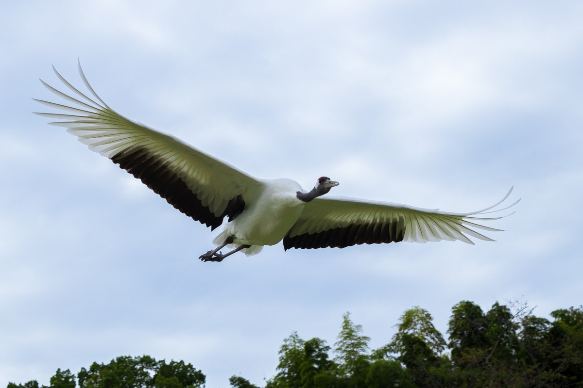 飼育員さんがタンチョウの鳴きまねをしながら走り出すと、タンチョウも走って飛ぶ準備に入ります。この日は何度か飛んでくれました。日によっては全く飛んでくれない日もあるそうです。