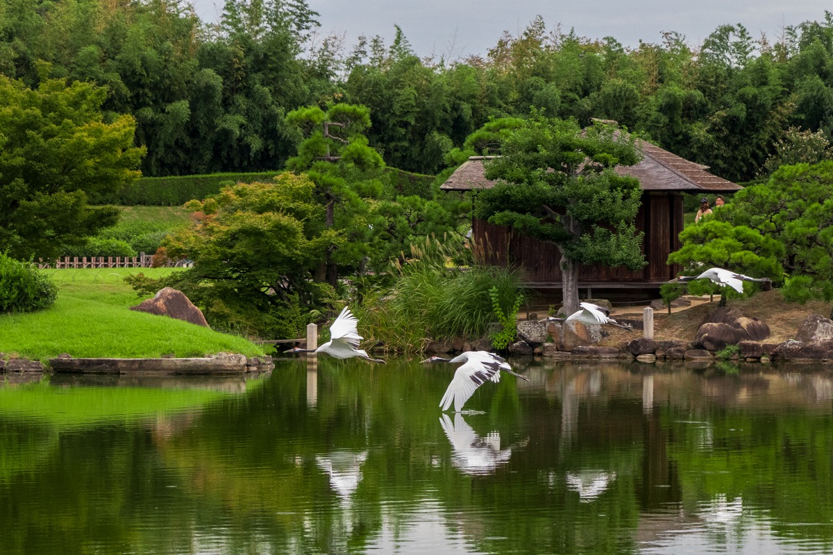 ミシュラン・グリーンガイド・ジャポンで三つ星に輝く「岡山後楽園」。日本三名園の一つでもあり、県内唯一の特別名勝です。その「岡山後楽園」では、秋から冬にかけてタンチョウの園内散策が行われます。今回は優雅に空を舞うタンチョウを見に行ってきました。タンチョウグッズも入手してきたのでご紹介します。