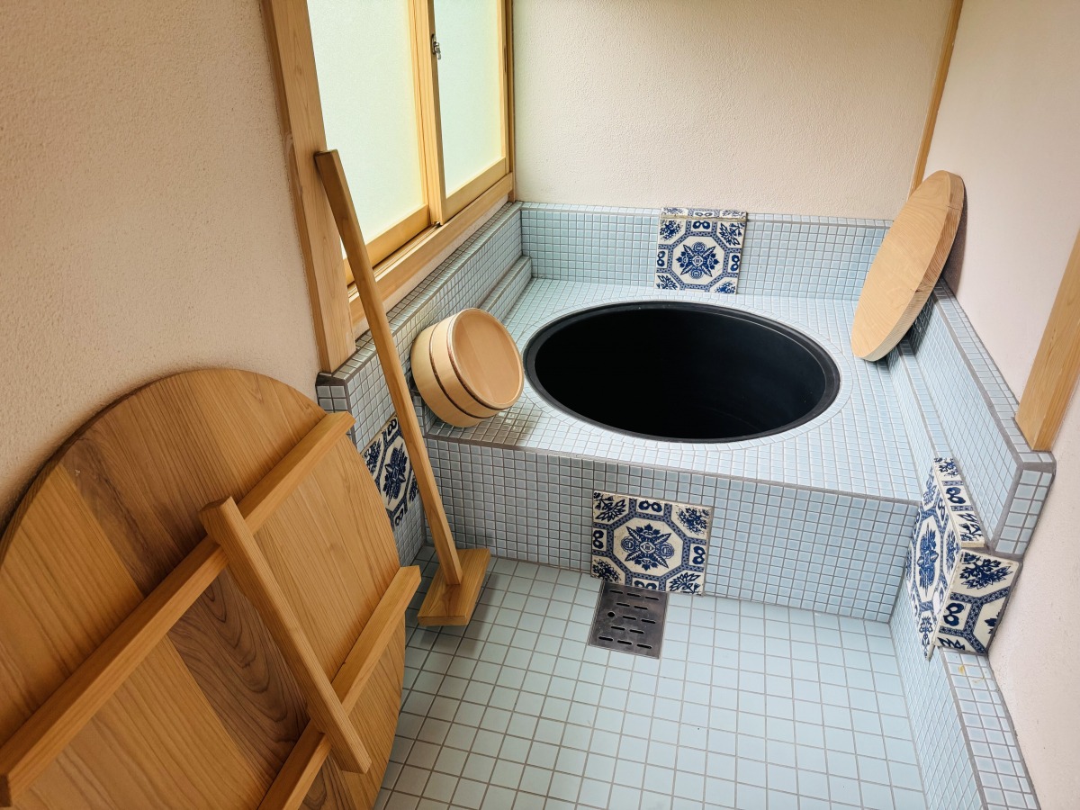 まず、井戸水をバケツリレーのようにして浴槽まで何度か運び、水をため、薪をくべて湯を沸かし、やっと入れます(入浴出来るまで早くて20分くらい)。ただ入るだけでなく、入るまでの準備の大変さを感じながら入るお風呂は、いつもより特別でとても良い体験になります。