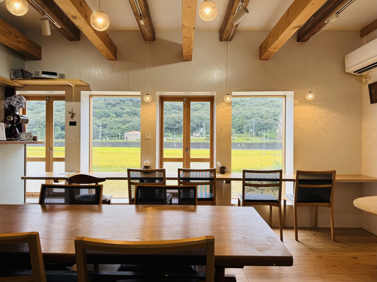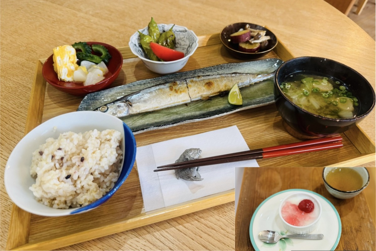 カフェは建築家であり、永瀬清子保存会理事長でもある横田さんが運営されています。2023年まで岡山市内で飲食店をされていた方です。店名は永瀬清子の詩『グレンデルの母親は』が由来。元々は納屋だった場所を改修し、カフェ、シェアキッチンとして営業されています。自然ゆたかな場所で、田園を眺めながらのごはんは最高でした。