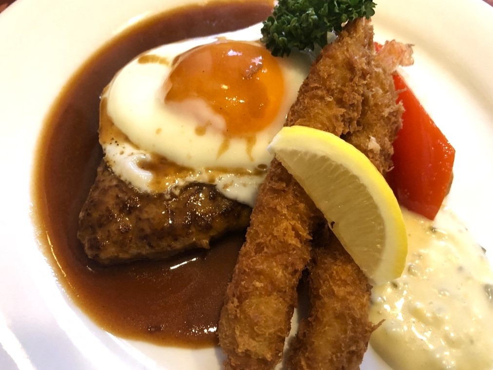 ●小さな洋食店ですが活気に溢れ、清潔感もあり、何より価格以上の満足を提供してくれるお店です。お勧めはAセットです。肉々しいハンバーグと海老クリームフライのダブルメインのセットです。弾力があり、ジューシーなハンバーグは自家製デミソースとの相性が抜群です。海老クリームフライは、見た目は大きなエビフライですが一口頬張ると、中からクリームコロッケのクリームが溢れてきます。海老も丸ごと一尾入っていて、お野菜タップリのタルタルソースと相まってご飯が進みます。その他のメニューも全部魅力的で、ザ!町の洋食屋さんです。(40代/男性・会社員)
