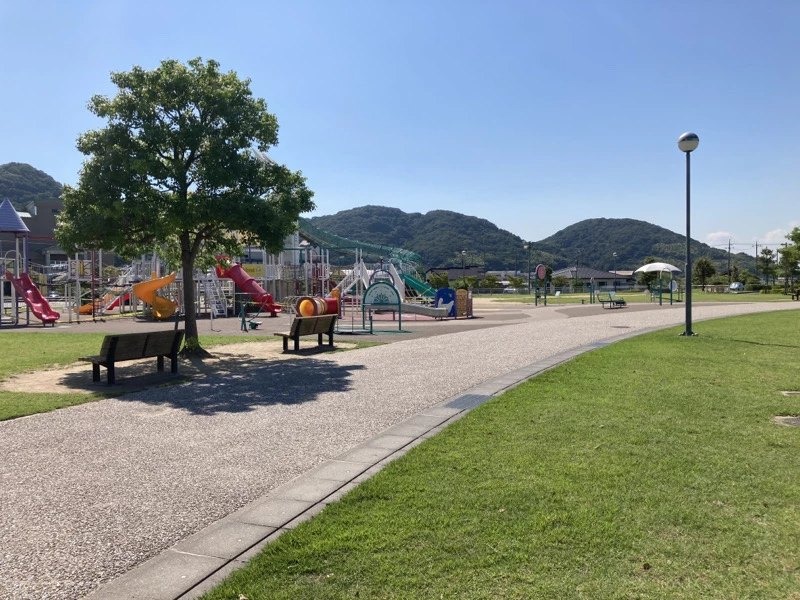 遊具やアスレチック施設も充実しており、子どもたちは広いスペースで自由に遊ぶことができます。小高い丘があるのも特徴です。さらに、公園内の散歩道を歩いたり、ジョギングを楽しんだりすることもでき、運動やリフレッシュもできますよ。