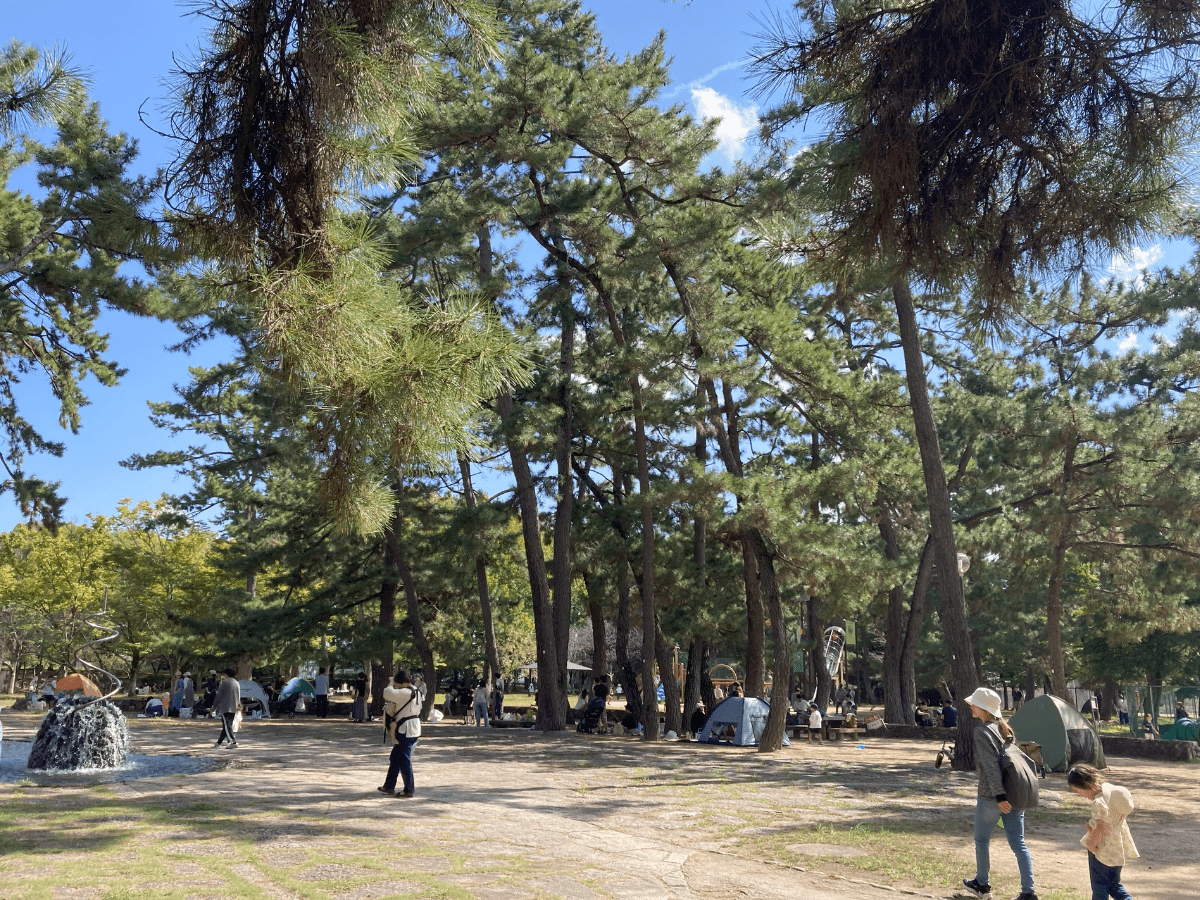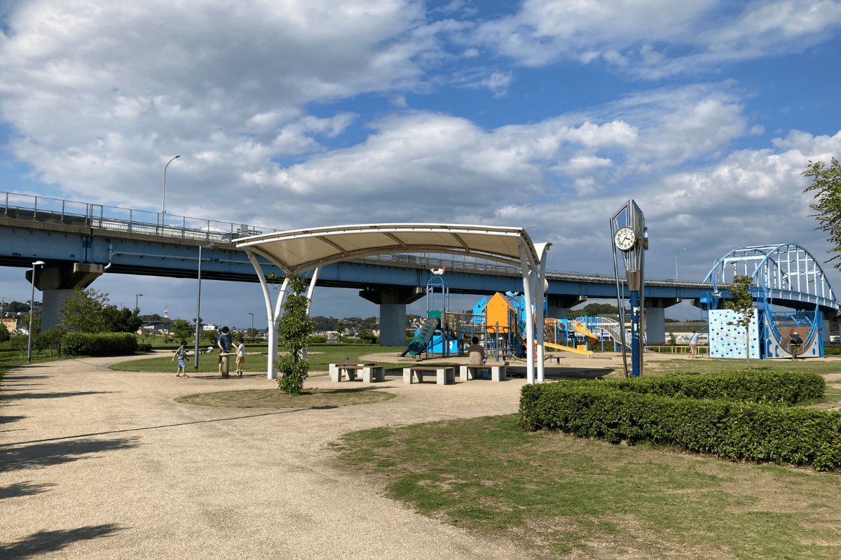 公園内には子ども向けの遊具も設置されており、小さな子どもたちが安全に遊べるスペースも充実しています。芝生広場は広く、レジャーシートを敷いて家族や友人と食事を楽しむのにおすすめのスポットです。