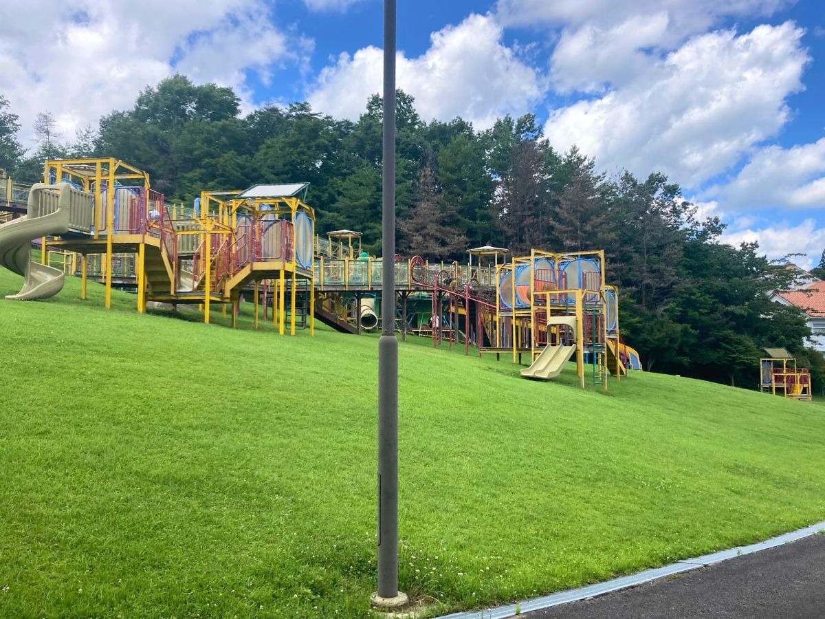 大型遊具には滑り台やアスレチックがあり、小さな子どもから遊び盛りの子どもまで大満足の施設が揃っています。親子で自然に触れながら遊ぶ時間を過ごすのにぴったりのスポットです。