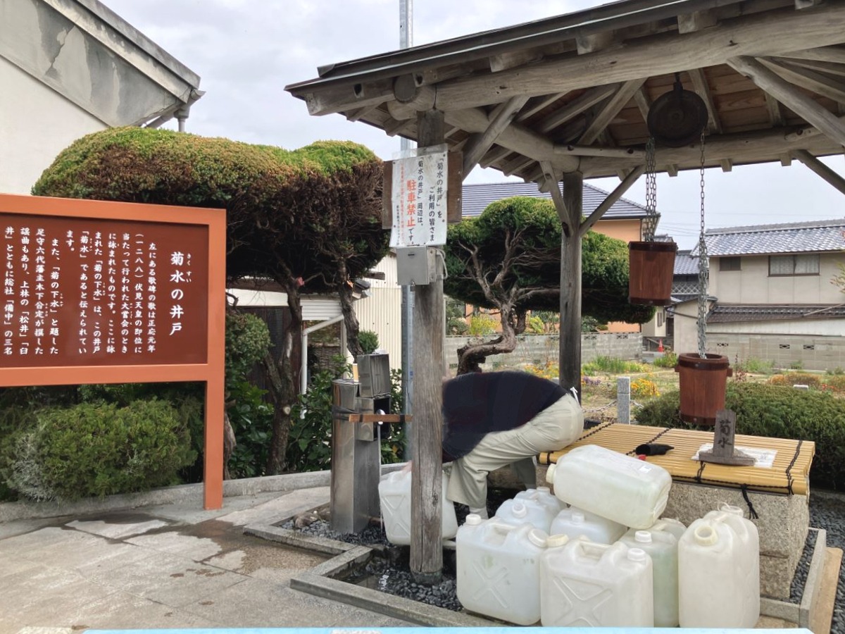 県立大学から長良山のふもとにある菊水の井戸へ。趣ある集落の中にあり、とてもキレイに手入れがされていました。1288年の伏見天皇即位に際して詠まれた歌にもでてくるという「菊の下水(したみず)」。「父が毎日使っています」と、水を汲みに来られている方もおられました。昔も今も、評判に変わりなし。ですね。