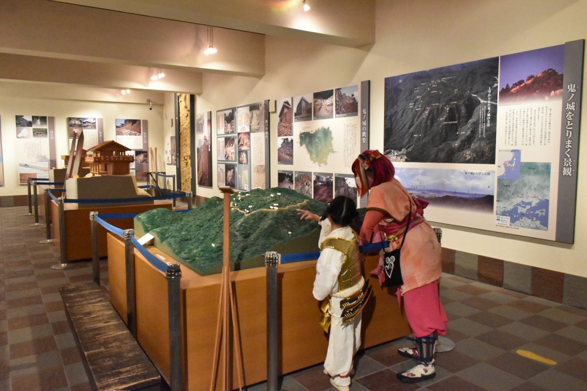 鬼城山ビジターセンターは「鬼城山」のことをわかりやすく、映像やパネル・模型を使って紹介しているガイダンス施設です。先にここで「鬼ノ城」の予備知識をつけて回るとより楽しく探索できるのでおすすめです。100名城スタンプはここで押せます(休館日は総社市埋蔵文化財学習の館で押すことができます。※開館時のみ)。また、城内にお手洗いはありませんので、こちらで済ませてから出発しましょう。