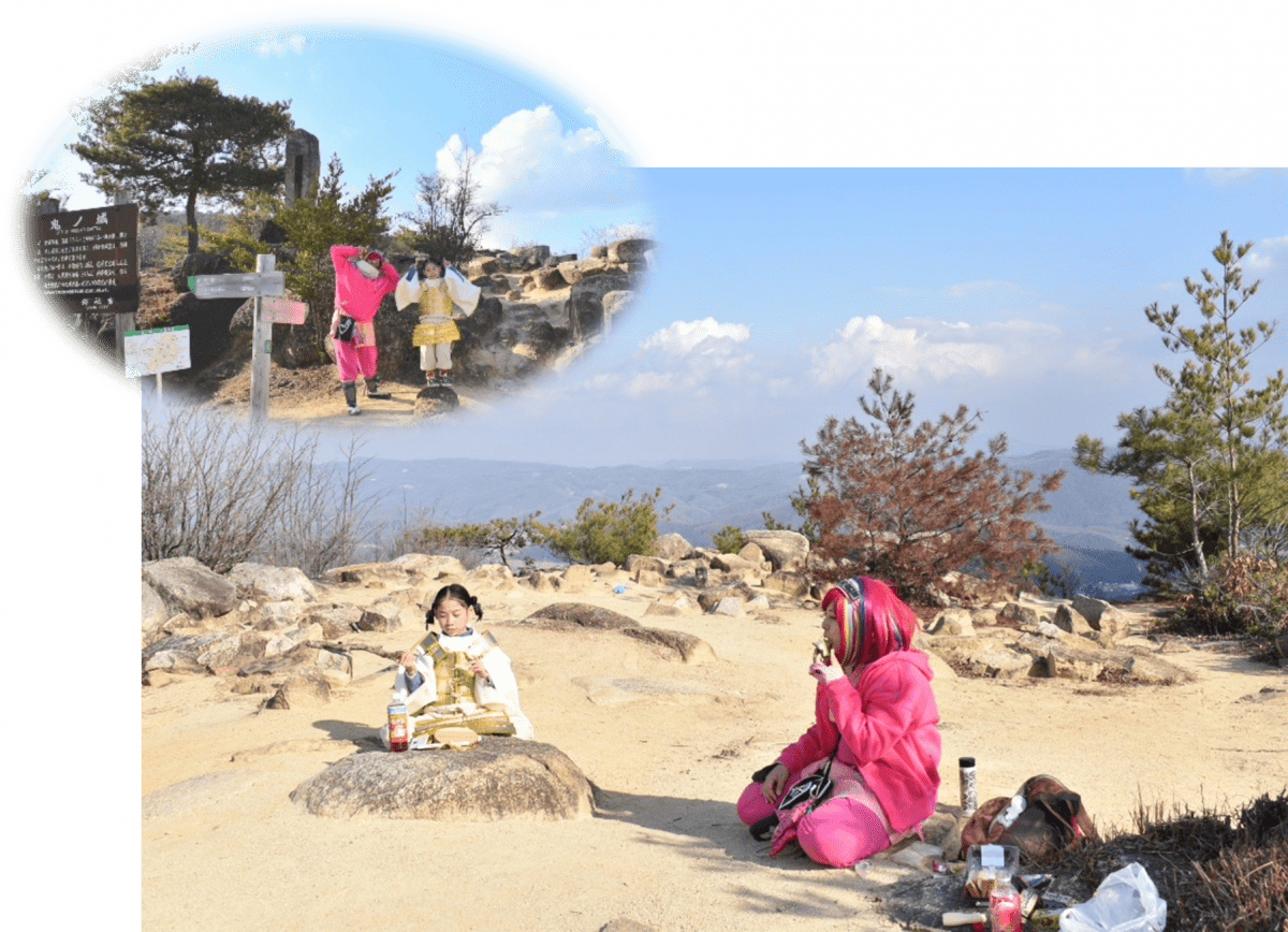 岡山県総社市にある「鬼ノ城」は、日本100名城にも選ばれている古代山城です。城から望む絶景と古代ロマンを求めて多くの歴史ファン、観光客、ハイカーが訪れます。でもハイキングで訪れた人以外、ほとんどの方は復元されている西門まで来て帰途につきます。しかしここから先、更に続くエリアにこそ魅力がいっぱい!今回は桃太郎伝説の主人公でもある桃太郎こと吉備津彦くんと、ともちピンク殿と共にハイキンクコースとしても人気の「鬼ノ城」を全て回ってご案内します。