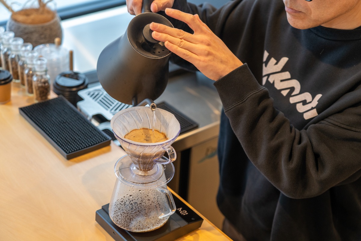 Uターンで矢掛町に戻り、道の駅の開業と同じ年に祖母の代から食堂が営まれていた場所にお店をオープンした店主の原田さん。香港に9年住んでいた際に出会ったという、スペシャルティコーヒーの魅力を伝えています。「店名のY(わい)は矢掛(YAKAGE)の頭文字Yと、方言で「自分」を意味する“わい”から取ったもの。そしてKNOT(ノット)は結ぶという意味。コーヒーを通じてここを訪れる人とまちとつなぐおもなしができれば」と話します。