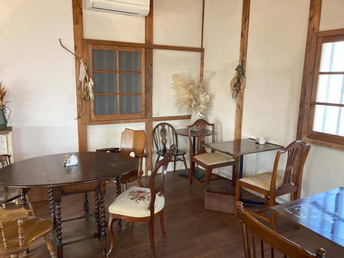 店内は木の温もりを感じられる落ち着いた空間が広がります。高い天井と大きな窓から光が差し込み、開放感たっぷり。どこか懐かしさを感じさせる雰囲気の中で、ゆっくりとした特別な時間を過ごせるでしょう。