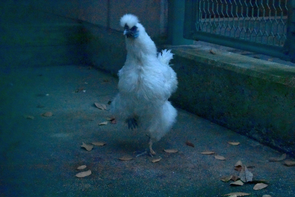 「阿智神社」のある鶴形山にのぼる前から、ニワトリのけたたましい鳴き声がまちに響き渡っていました。階段の途中に鳥小屋を発見。金網のむこうをのぞきこんで見ると、朝を報せてくれている烏骨鶏が2羽。足取りも、鳴き声も、軽やかに。