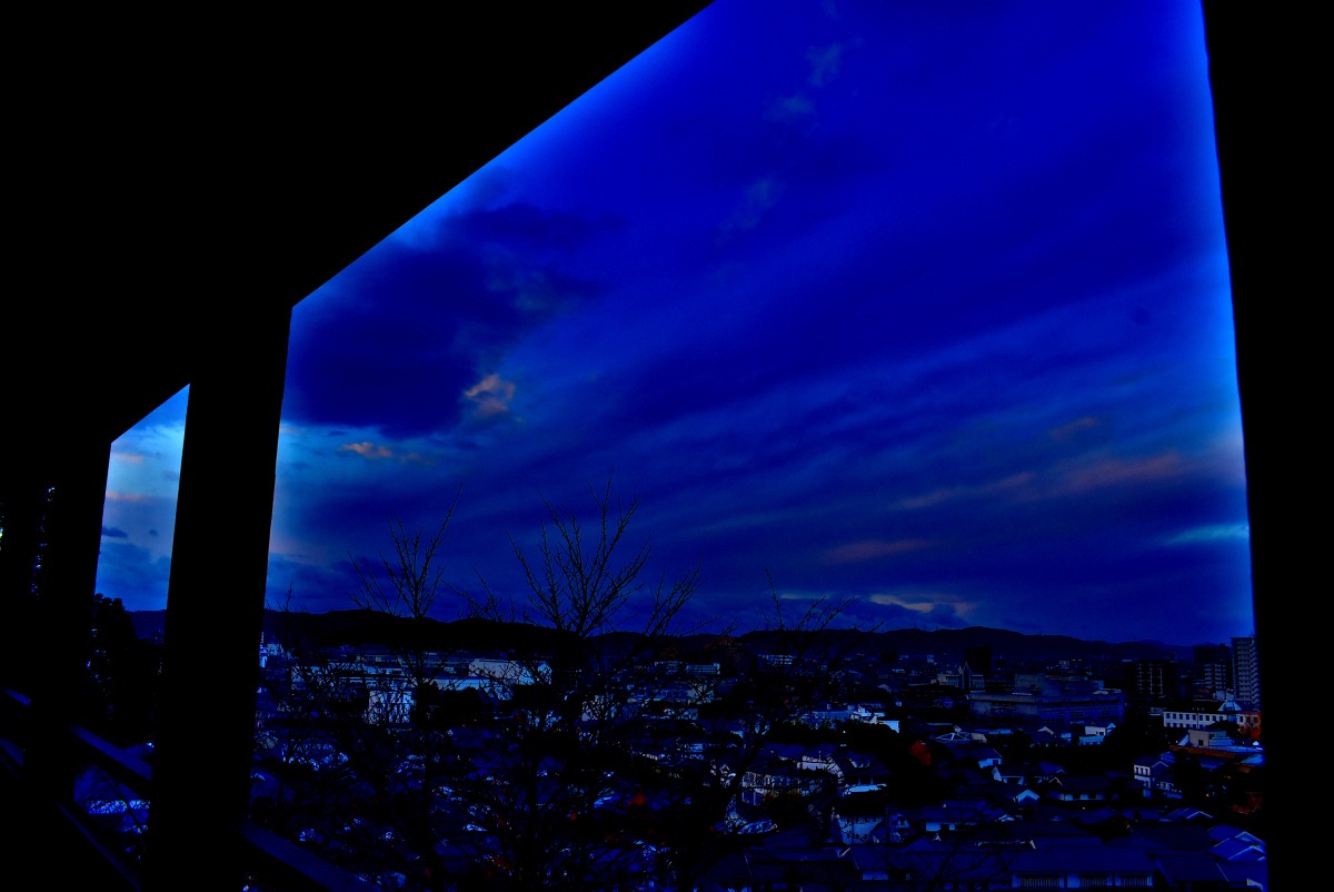 濃紺、藍色、オレンジ、茜色、錆色など。あらゆる色に変化しながら、ゆっくりと一日がはじまってゆきます。