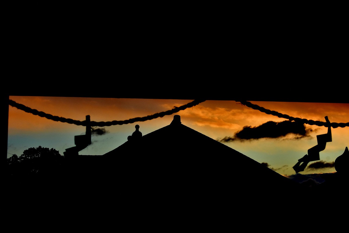 ぎしぎしと、床板をふみしめながら斜面に張り出す懸造(かけづくり)という建築様式の絵馬殿へ入りましょう。倉敷のまちが一望できますよ。刻一刻と色が変わっていく空をゆっくりながめたり、かつて海だった頃の景色を思い描いてみたり。こころ落ち着けるスペースです。