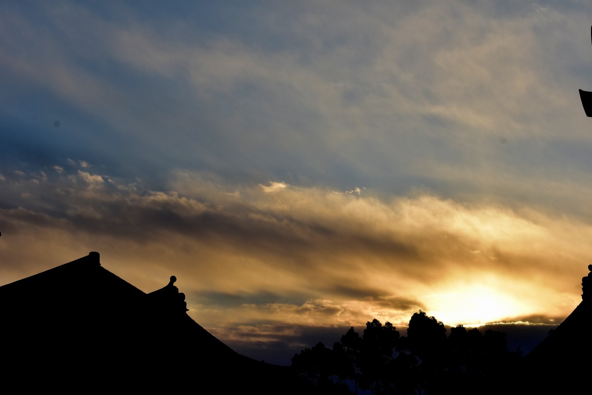 拝殿でしっかりと手を合わせてふりかえると、空が赤く染まり始めていました。