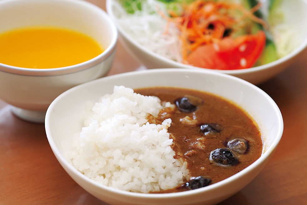 太陽の恵みをたっぷり受けて育ったブルーベリーのドライ果実や地元産のタマネギ・ニンジンを使った、吉備中央町オリジナルカレー。さっぱりとした味わいが特徴です。