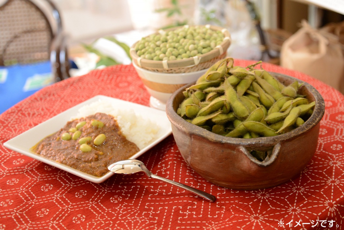 湯原温泉の女将さんたちが考案した、湯原地域の特産品である青大豆・キヨミドリを使ったレトルトカレーです。肉を使っていないため、とてもヘルシーです。オリゴ糖のもとになるショ糖の含有量が多く風味もよいキヨミドリは、「まぼろしの青大豆」「緑のダイヤ」とも呼ばれています。