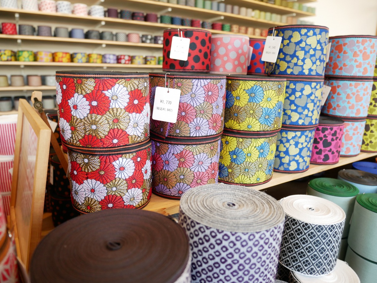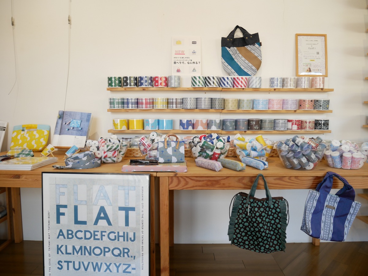 畳縁(たたみべり)をご存じでしょうか。畳の角の摩擦を防ぎ、畳を敷き合わせる際に隙間ができないようにする役割がある、側面に付けられた布のことです。旅館などで見かける畳縁は単色の深い色をしているイメージですが、最近は様々なデザインが登場していて、ハンドメイドの素材としても人気があります。倉敷市児島は、畳縁の国内シェアの約8割を占めており、倉敷観光のお土産にも人気です。今回は、畳縁シェア日本一の「髙田織物株式会社」にお邪魔しました。畳縁の工場見学、ミニ畳の制作体験の様子や工場直営のショップをご紹介します。