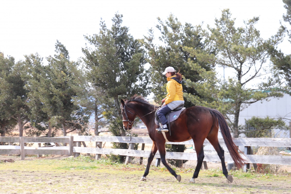 スタッフの方の乗馬を見せてもらいました。アラマサと気持ちを合わせて走る姿は美しく、あんなふうにいつか走ってみたいと思いました!