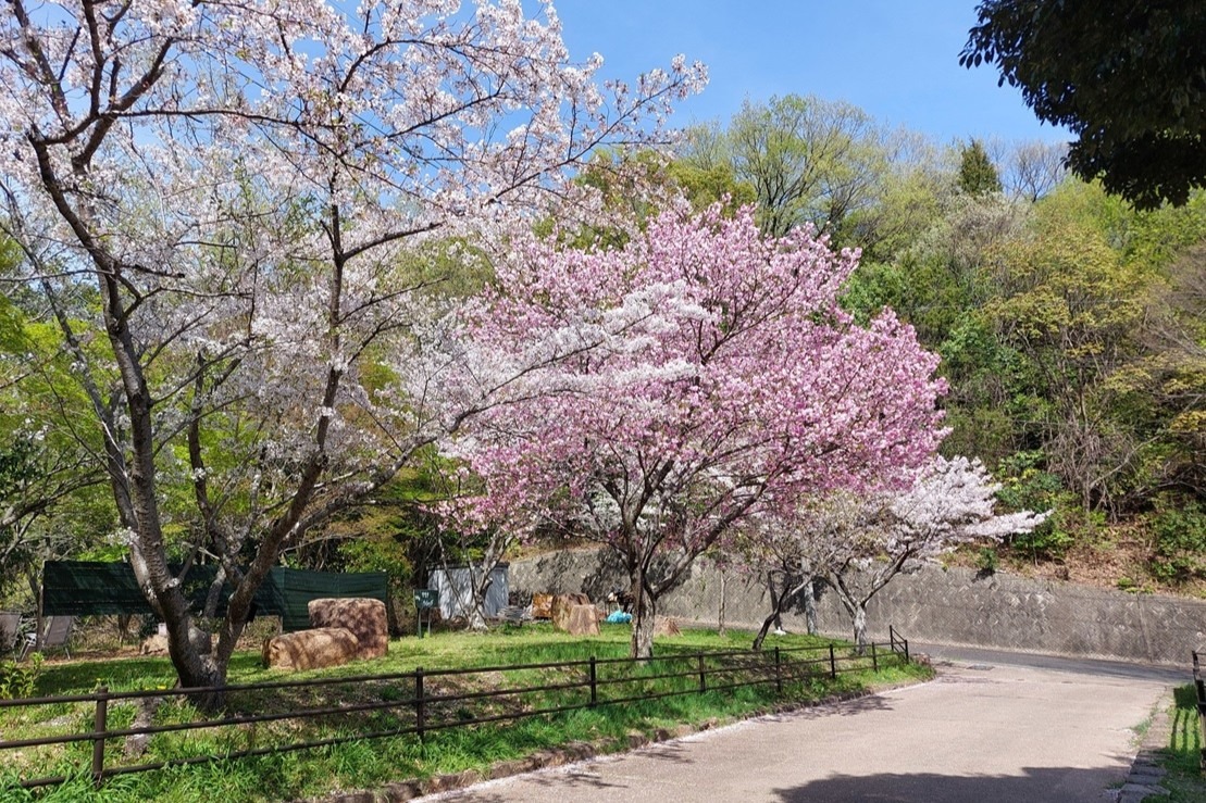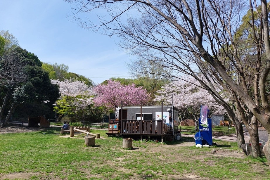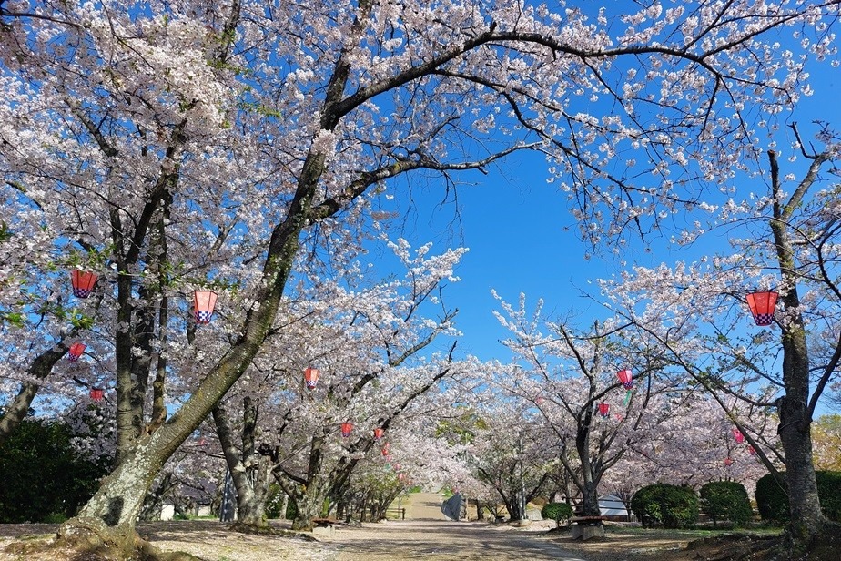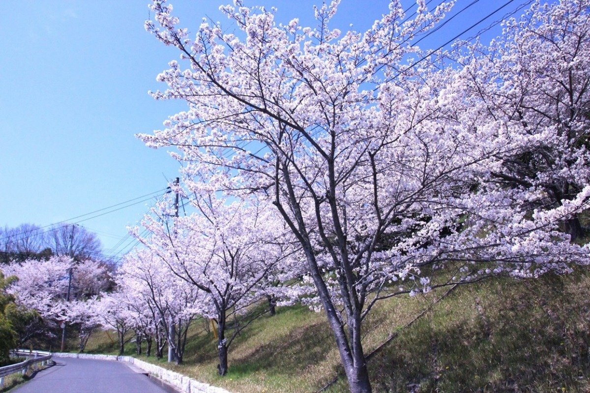 「早島町ふれあいの森公園」では駐車場の入り口から桜並木が出迎えてくれます。他にも園内にはサウナヴィレッジやキャンパーに人気の湖畔サイトなど、桜を楽しめる場所があります。