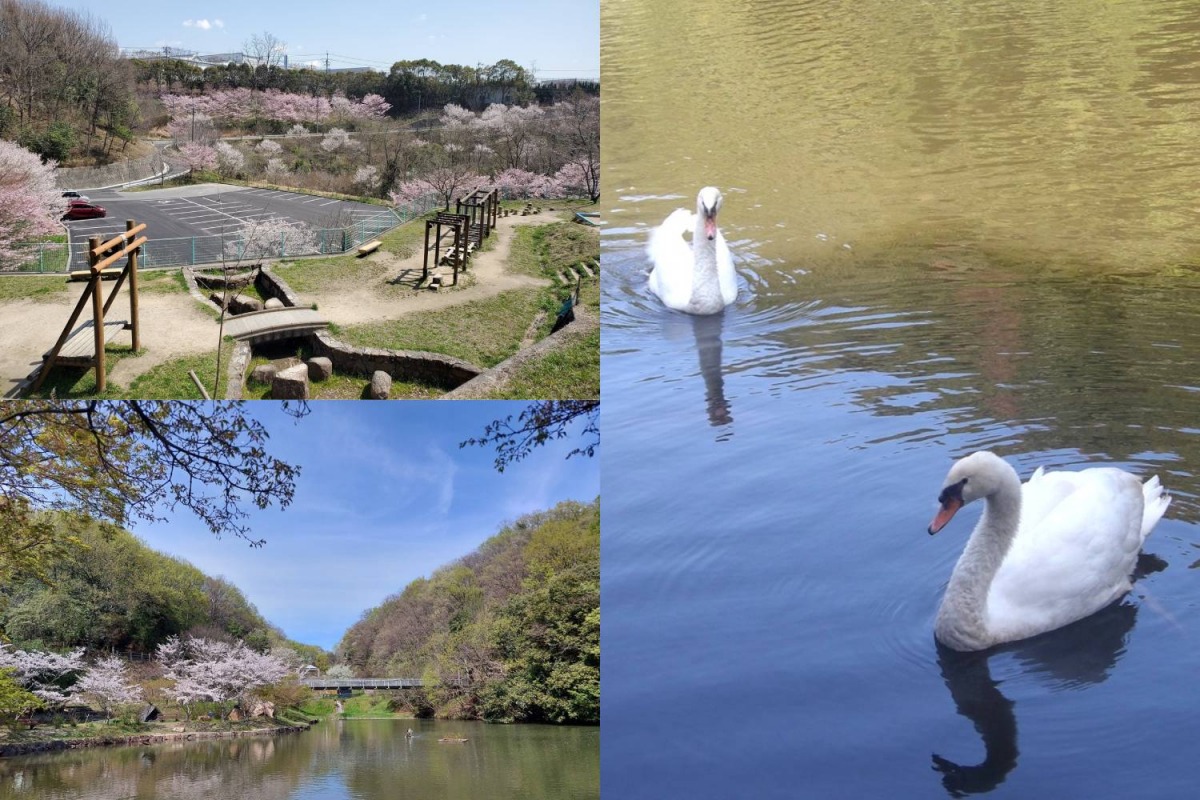 長いローラー滑り台や本格的なアスレチックが数多く揃っているのも人気の理由です。公園内の池は白鳥や鯉と触れ合うことのできる、子どもたちの人気スポット。年間通してたくさんの家族連れが訪れています。