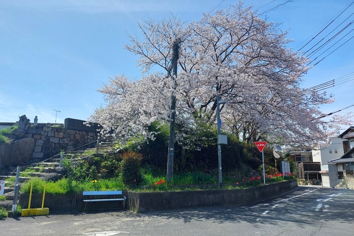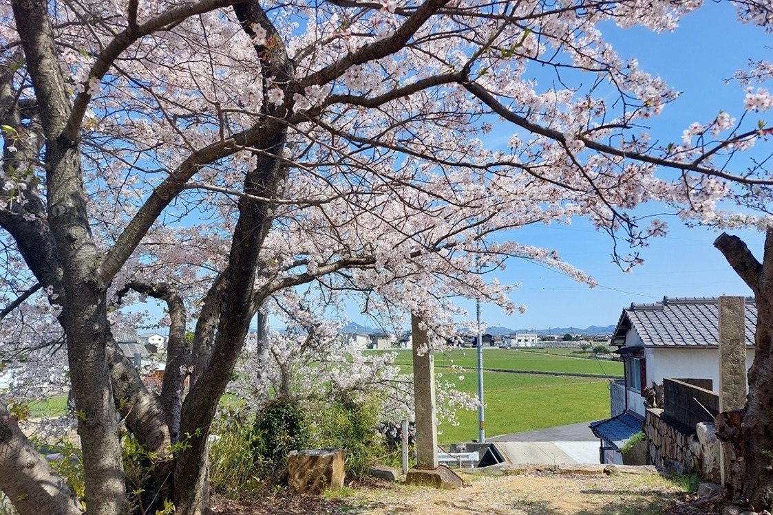 江戸の中期頃、地元の神社のお祭り(御神幸祭)が始まった際に、神様の休憩場所(御休所)として設けられた場所で、知る人ぞ知る早島町の桜の名所です。